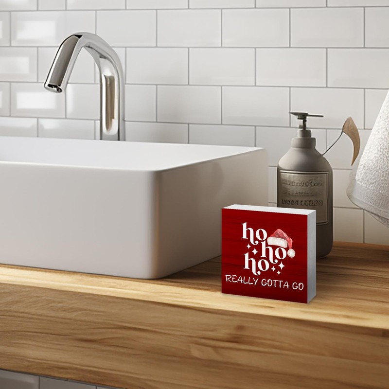 Christmas Signs, Hohoho Really Gotta Go Christmas Wooden Box Sign, Red Christmas Decorations, Hohoho Christmas Decor, Christmas Wood Signs for Home Office Desk Table Shelf Decoration, 5x5 Inch