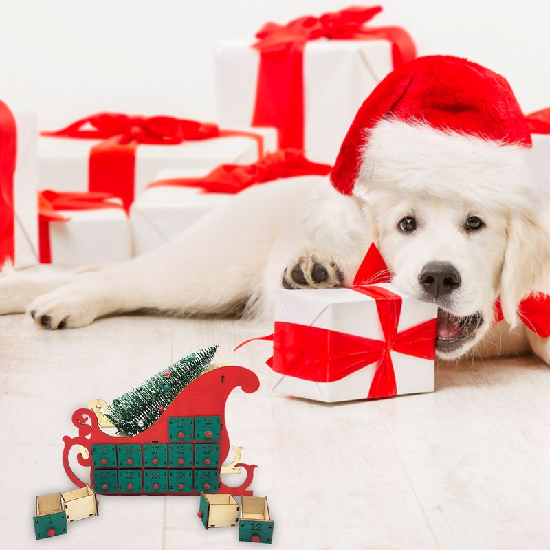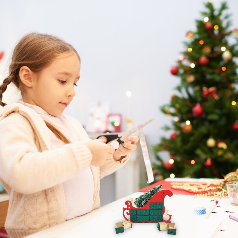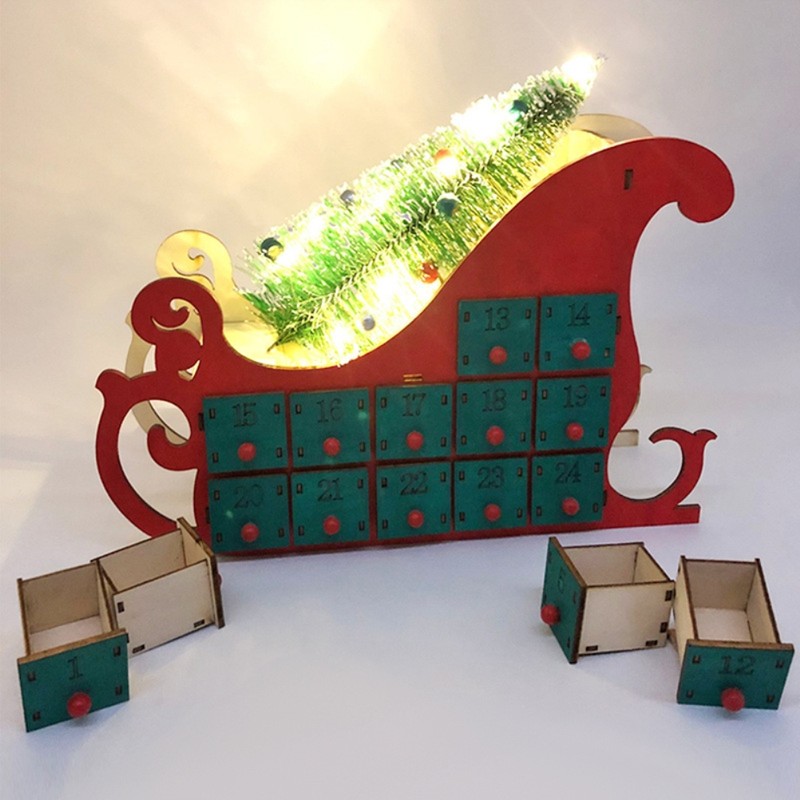 Christmas Sleigh Tree Wooden Advent Calendar Countdown 24 Drawers with LED Light Xmas Party Decor Ornament