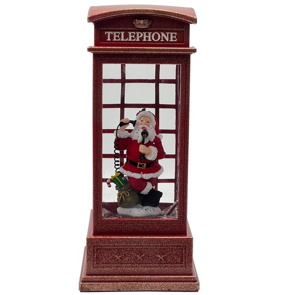Christmas Snow Globe Lantern - Large Water Lanterns with Lights and Glitter - Telephone Booth Decoration - USB or Battery Powered Musical Box for Adults Girls (Santa)
