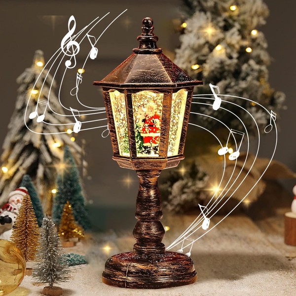- Snow Lantern Christmas Candle Vintage Christmas Water Glittering Snowy Globe Night Light, USB and Battery Operated Snow Globe Decoration