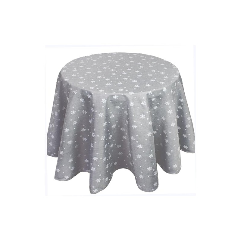 Christmas Snow Tablecloth Grey 160 cm Round