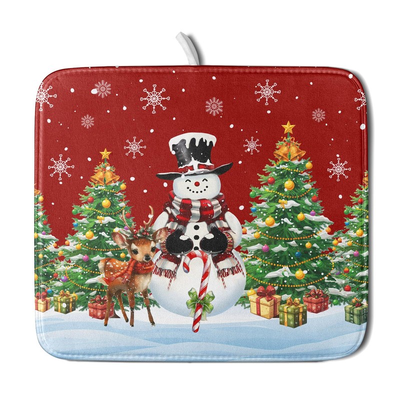 - 1【High Quality Material】:Our merry christmas snowman drying mat is made of high absorbent microfiber and the middle is made of composite spongedurable, reversible do not fade and comfortable. At the same time, it can protect your kitchen counter from scratching by the tableware.