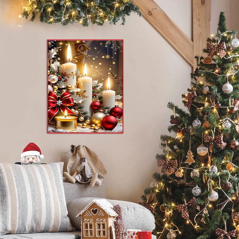 Christmas Stamped Cross Stitch Kits - Christmas Candles Counted Cross Stitch Kits for Beginners Adults Needlepoint Cross-Stitch Patterns Dimensions Needlecrafts Embroidery Kits Arts and Crafts