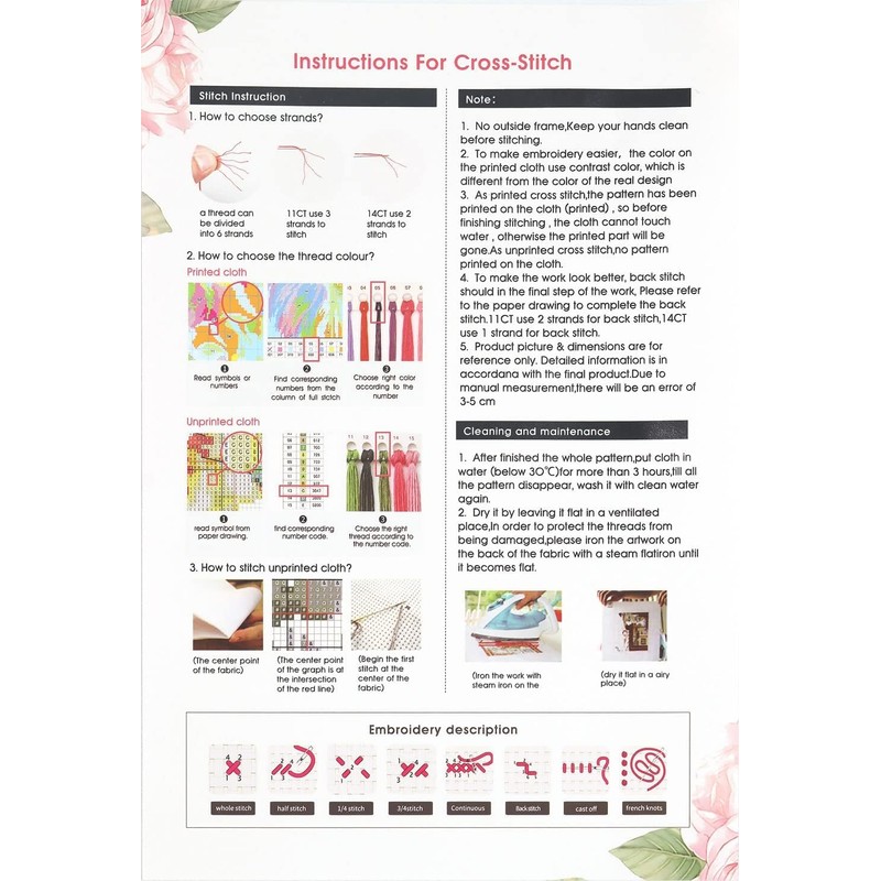 - Package:11.8*15.8inch, 2pc cross stitch needles, enough thread already sorted, English instructions,cross stitch patterns instructions,and 11CT Pre-printed stamped cross stitch fabric cloth. (11CT,without frame)