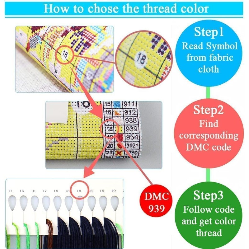 ✳️11CT cross stitch design should be completed with 3-strands thread. One thread is composed of 6 strands, so you need to divide the 6 strands into two 3-strand lines before you work.Please use 3 strands of thread for full stitch and 2 strands for back stitch.