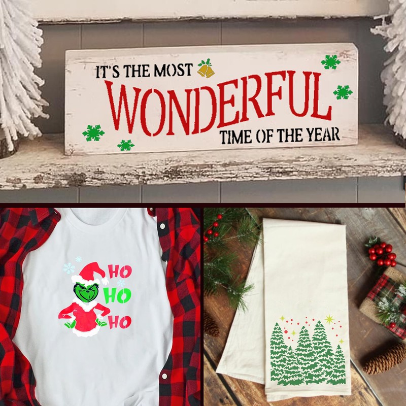 - GREAT CHRISTMAS STENCILS FOR HOME DECOR: Decorate with a wide variety of winter stencils for painting on wood. Set includes a It's a most wonderful time of the year and a Merry Christmas stencil (12x5.5 inches). 6 stencils measuring 8x8 inches/25.4x25.4 cm with a Let is snow, tree stencil, believe and farm fresh stencil and more