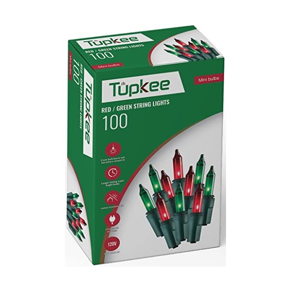 Christmas String Lights 100 Count - Incandescent Mini Red and Green Warm Christmas Light - 20.5 Feet Light String - Christmas Tree Lights - Indoor & Outdoor Christmas Decorations