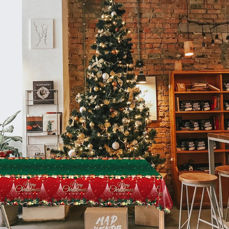 - Christmas Table Cloth 54x108" Xmas Red Snowflake Decorated Merry Christmas Table Cover,Christmas Table Decoration Rectangular Wipe Clean Christmas Tablecloth Holiday Tableware Accessories-PVC Reusable