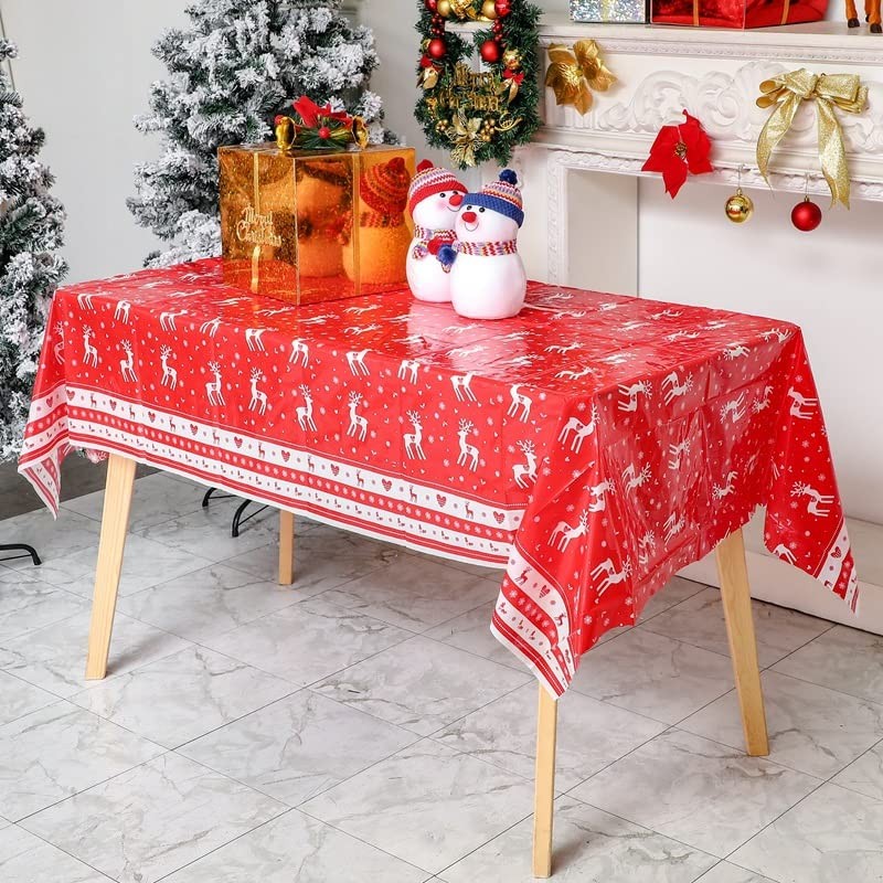 Christmas Table Cloth Party Disposable Tablecloths,Red and Christmas Elk Table Covers,108*180CM Rectangle Large Plastic Tablecloth Party for Picnic,Baby Shower,Xmas Party,Christmas Table Decorations