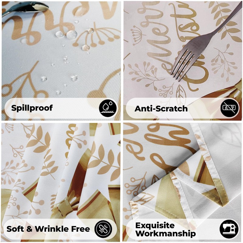 - đâđ ăWATER-RESISTANT TABLE CLOTHăOur party table cloth is crafted from high quality, extremely soft and smooth material. This wipeable table cover protect of your table and furniture because of its water-resistant, wrinkle-resistant and spill-proof design. Cut out from a single piece of cloth, this dining table cover can cover the table seamlessly without any unevenness and provides a clean hemline that does not fray