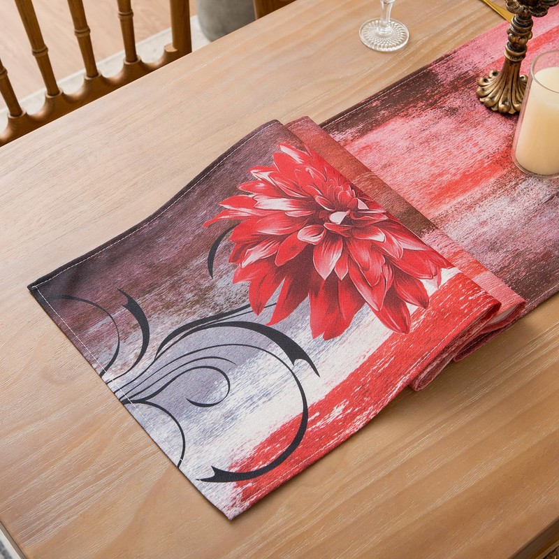 - High Quality Material Made of high quality linen fabric, soft and durable, breathable and stain resistant. Single layer abstract faux flower pattern design, beautiful and elegant at the same time, can well protect the table from scratches, protect your tabletop from heat, cold and cooking oil.
