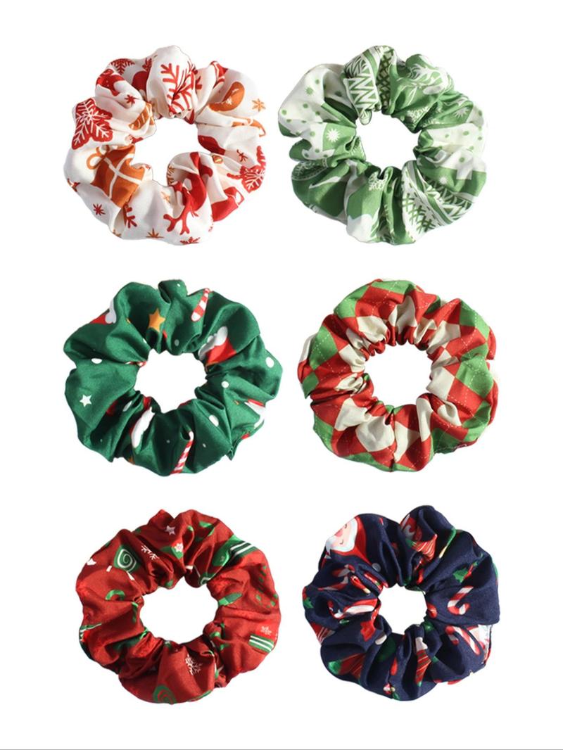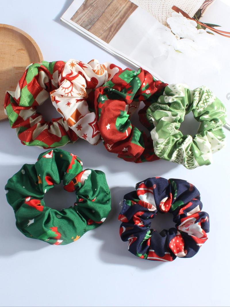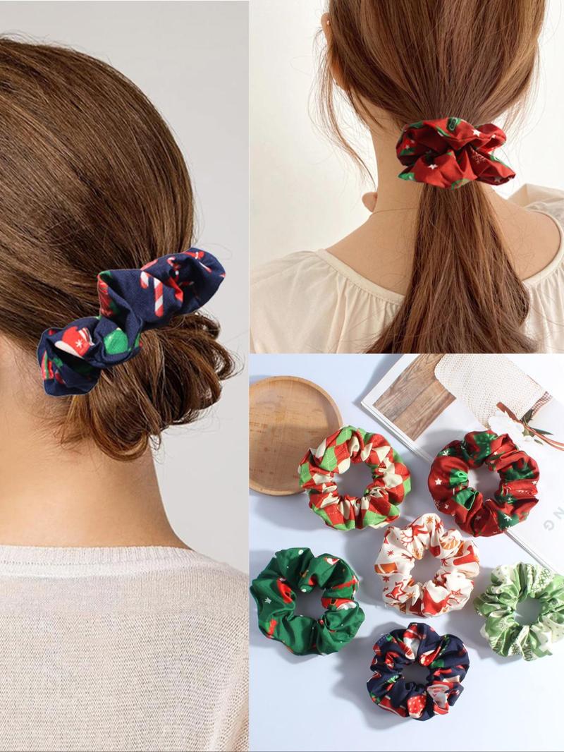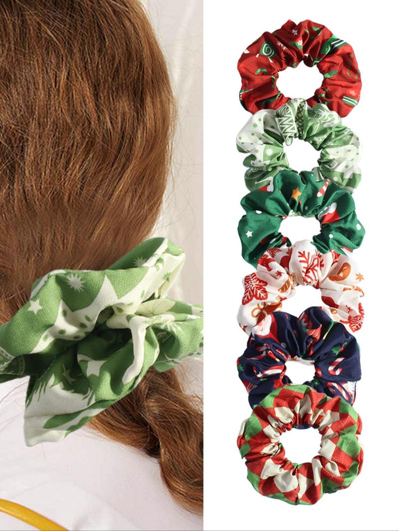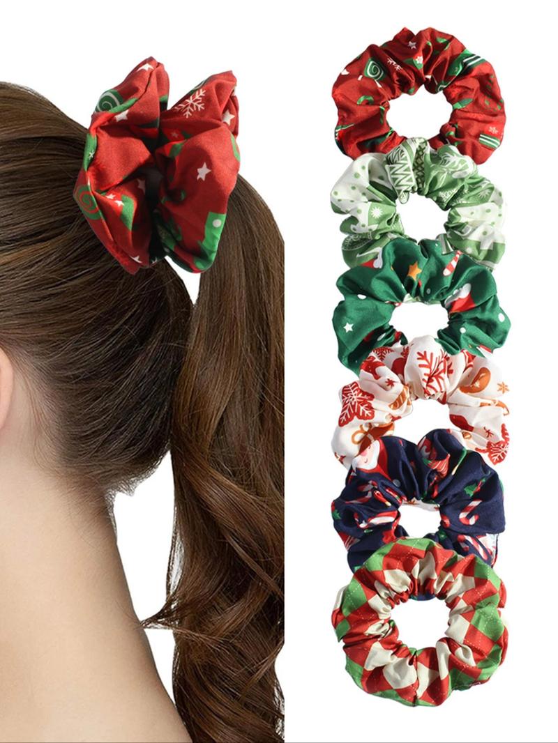 Christmas Themed Scrunchie, 6 Counts Cute Hair Scrunchies, High Stretch Hair Tie, Fashion Hair Accessories & Decor for Women & Girls