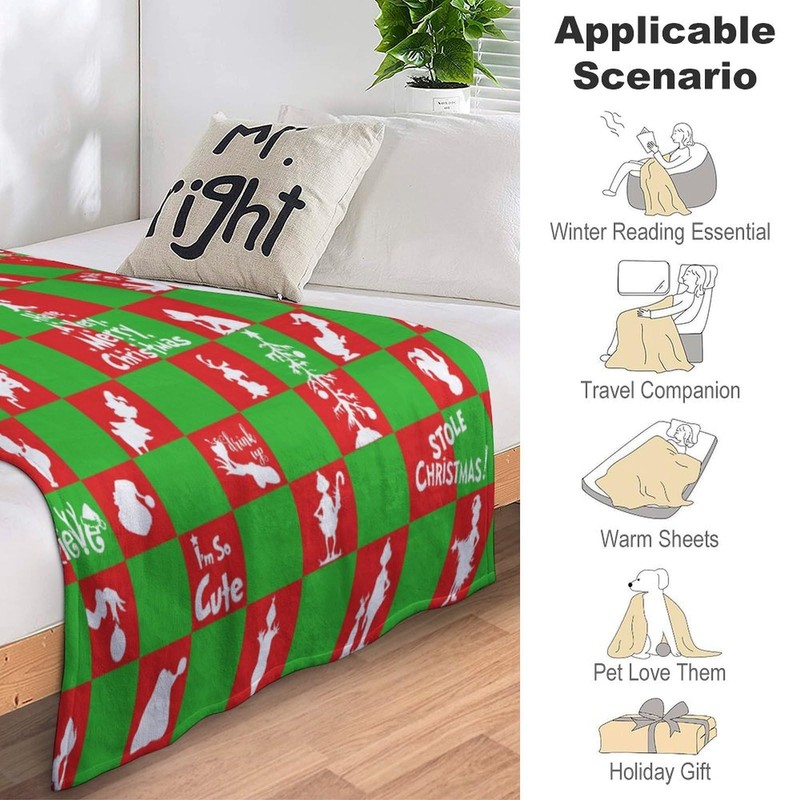 - 【Applicable Occasions】The christmas throw blanket provides you a warm hug, makes you feel comfortable and relaxed. It is suitable for sofa, couch, bed, car and airplane when reading, working watching TV, napping and even camping or traveling because of it's lightweight and portable.