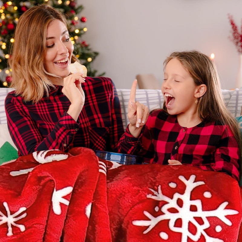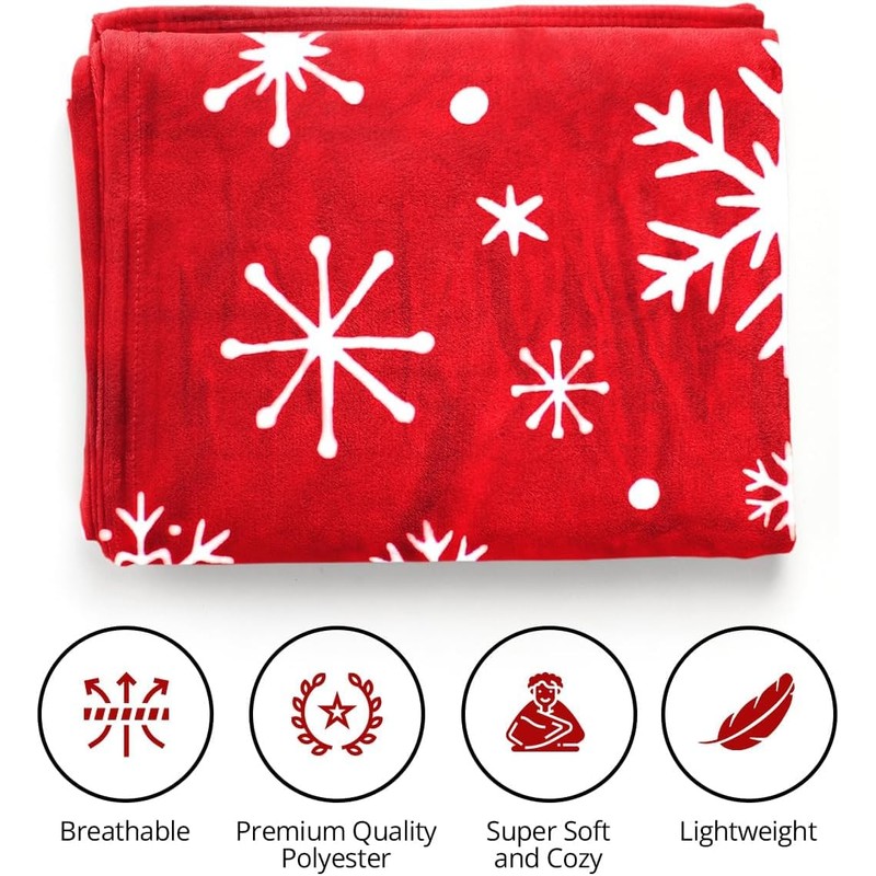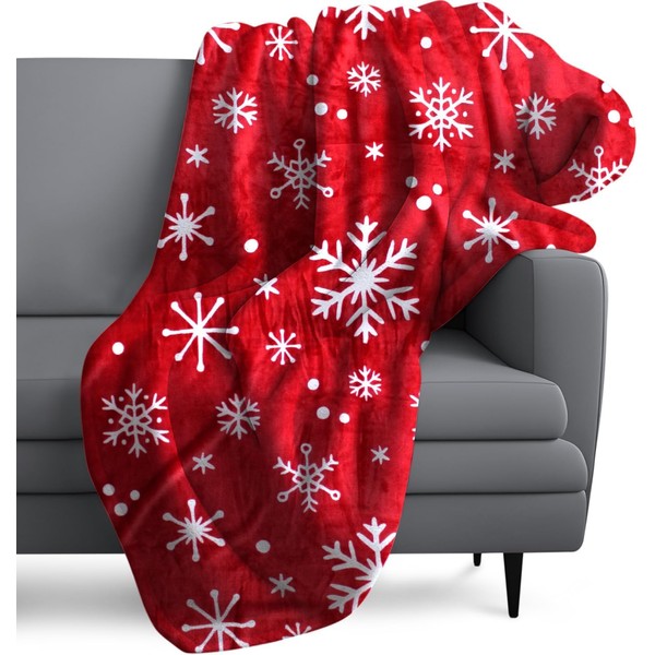 - FESTIVE SNOWFLAKE SPLENDOR - Embrace the spirit of the season with our Snowflake throw blanket Christmas. Adorned with festive red snowflakes, it exudes holiday cheer. Whether draped over your sofa or used as a winter throw blanket, its Christmas charm is unmatched, making it an ideal Christmas blanket for creating a cozy winter wonderland indoors.