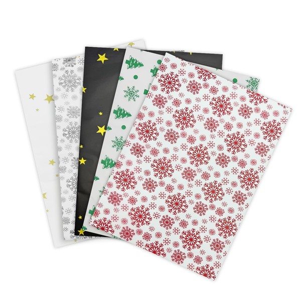 Christmas Tissue Paper for Gift Wrapping - Festive Design Star Snowflake Tissue Paper 25 Sheets 5 Different Pattern 50 x 35cm for Christmas Craft Gift Wrapping