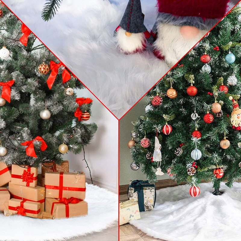 - Reusable: The white fur tree skirt has a long service life. After Christmas, you can also use it as a household rug and kitchen apron or fold it up and put it out back next year The fluff is soft and also a favourite of pets in winter