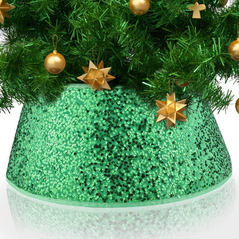 Christmas Tree Collar, Glitter Sequin Tree Skirt Christmas Tree Ring Christmas Tree Skirt Xmas Round Shiny Sparkle Tree Stand Base Cover Collar for Christmas Tree Decorations (Green)