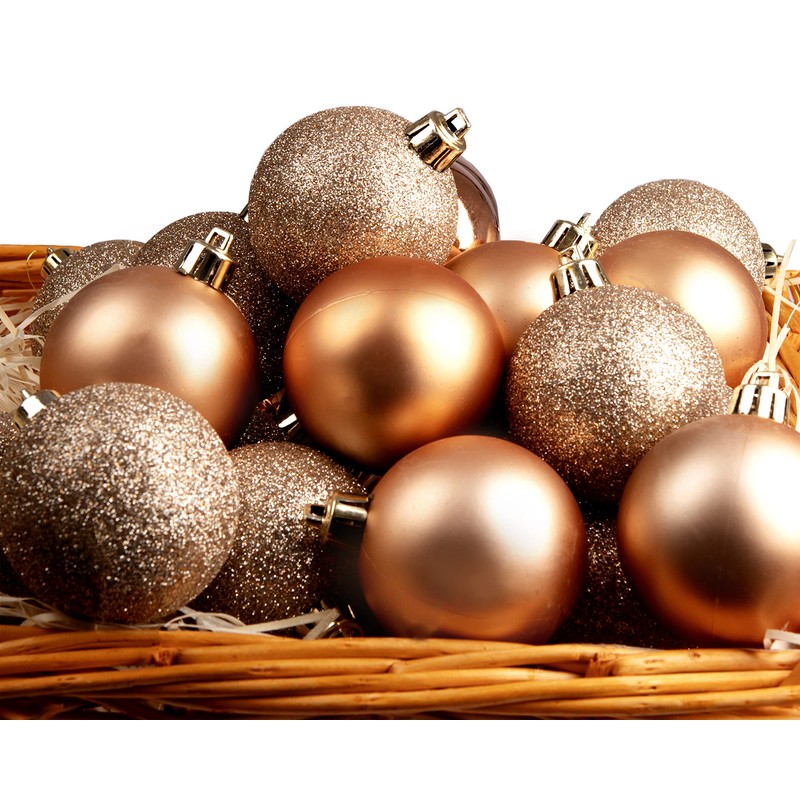 Christmas Tree Decoration 24 Pack 60mm Shatterproof Baubles - Rose Gold