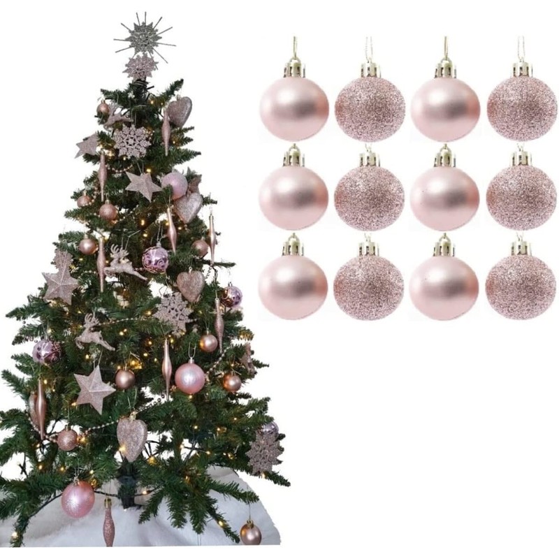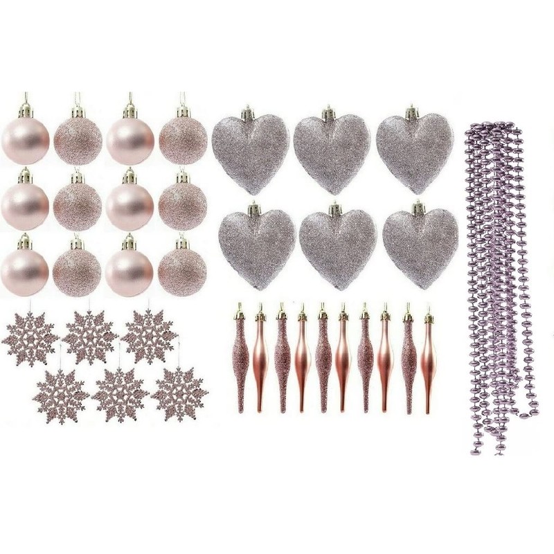 Christmas Tree Decoration Baubles Snowflakes Droplet Garland Heart Set 35pc (Rose Gold)