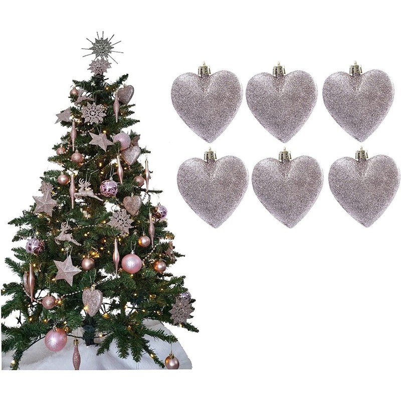 - Pack of 6 Heart Baubles Pack Contains: Glittery Heart Baubles