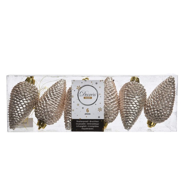Christmas Tree Decoration Cones Plastic 8 x 4.5 cm Pack of 6 Champagne Pendants