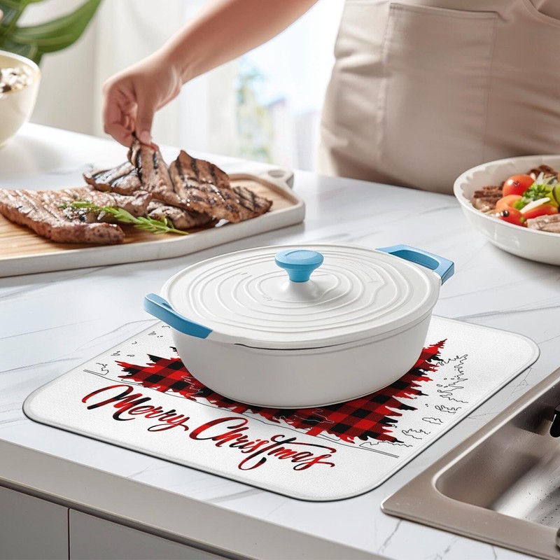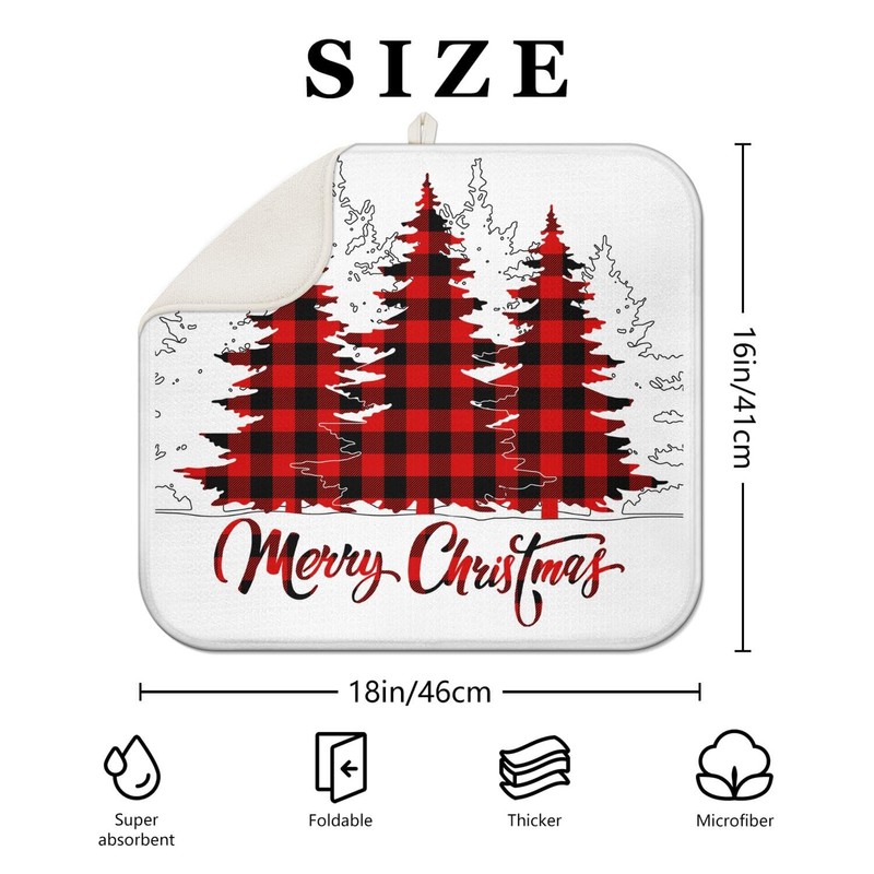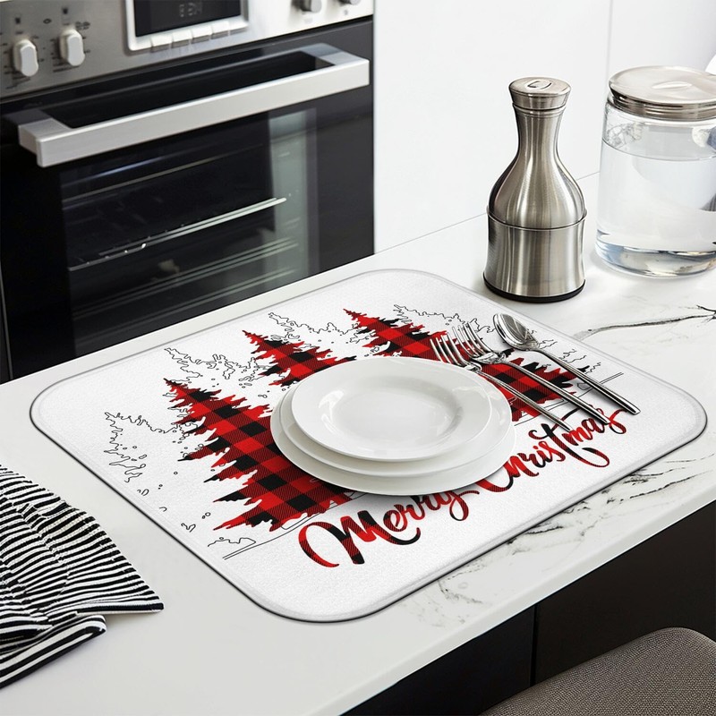 Christmas tree Dish Drying Mat, Highly Absorbent Microfiber Kitchen Counter Mat, Dish Drying Pad for Dishes, Utensils, Pots and Pans, Large 16" x 18"