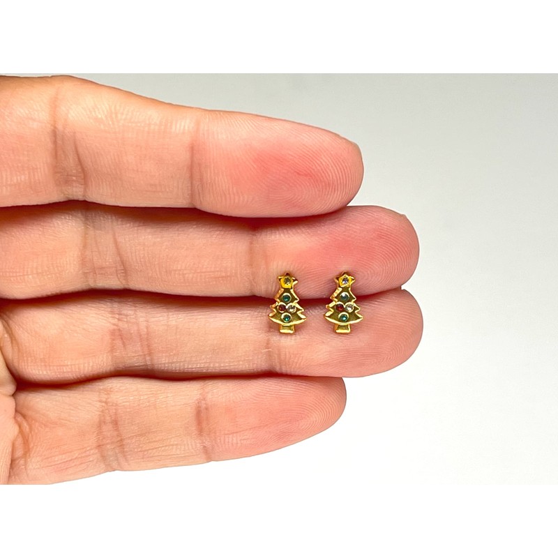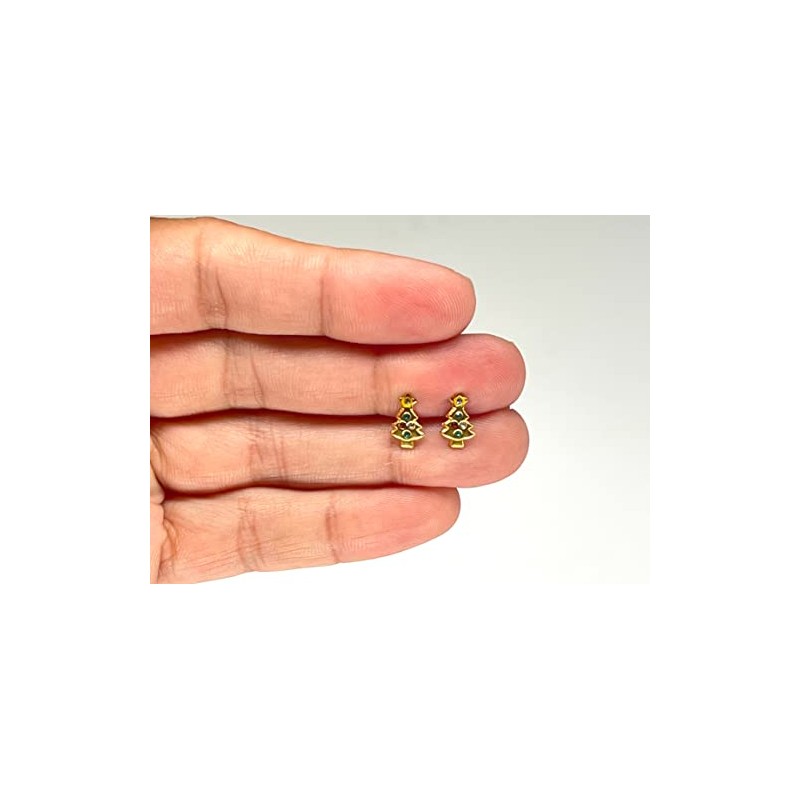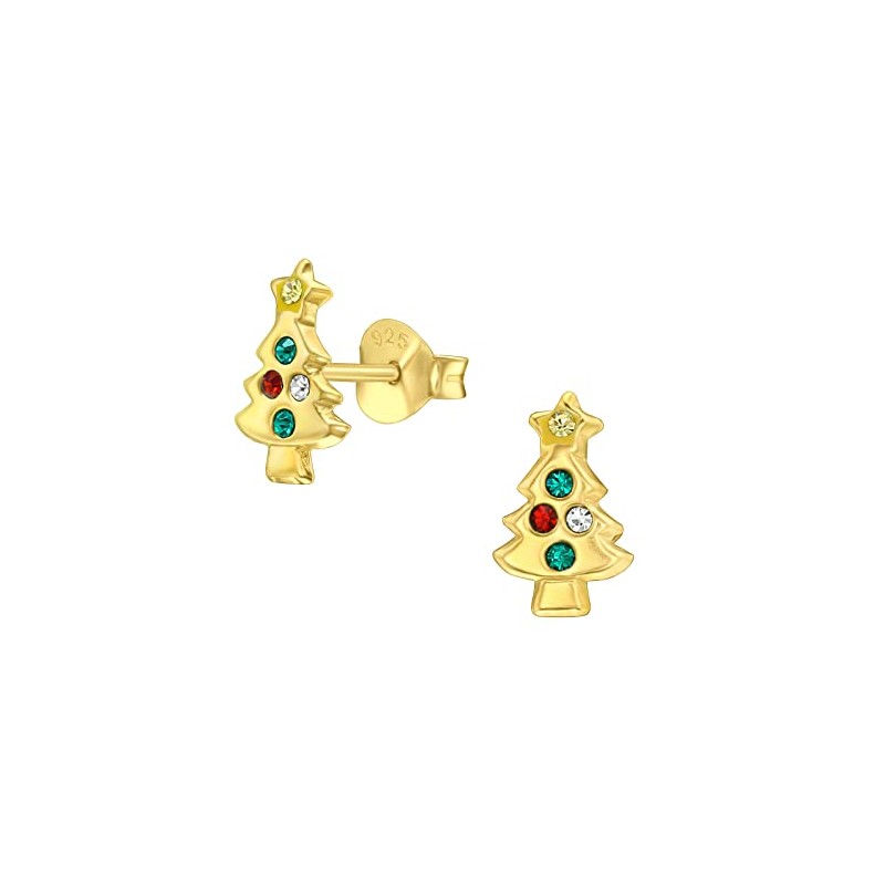 Christmas Tree Earrings with Crystal Stones - Gold Plated - 925 Sterling Silver
