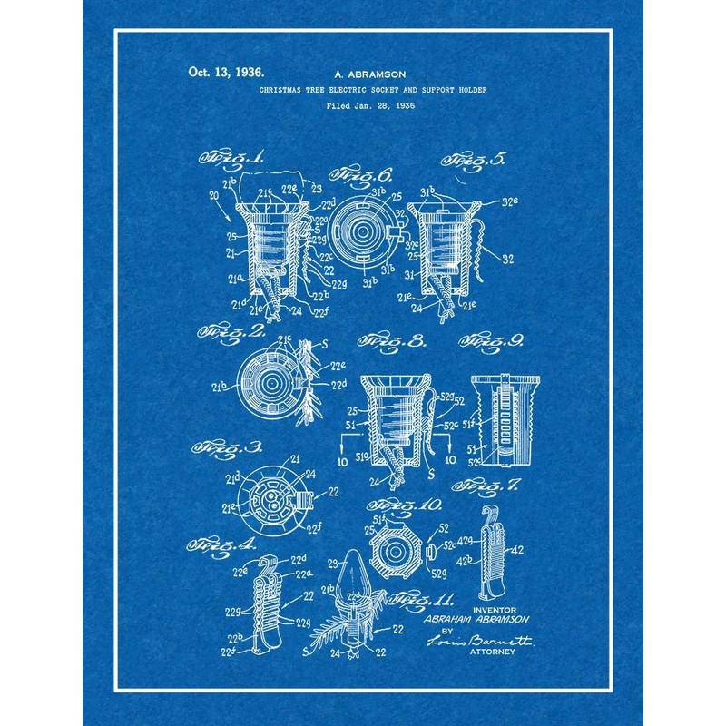 Christmas Tree Electric Socket and Support-holder Patent Print Blueprint with Border (5" x 7") M12788