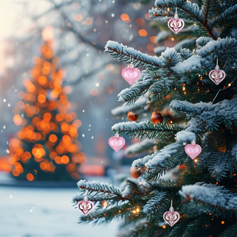 - Christmas Ball Ornaments: These xmas tree ornaments come in a plastic package box sized 8.5x6.3x9.5cm containing 12 beautiful heart-shaped Christmas balls perfect for holiday decorations