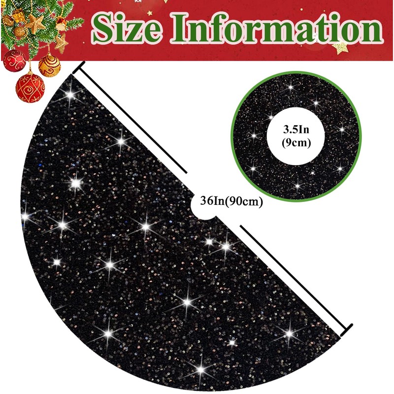 - ❄️【Size Detail - 36 Inch Halloween Tree Mat】You will receive a 36 inches diameter black glitter sequins tree skirt, fits under 6 foot tall trees. You can put some gifts, Christmas boxes, Christmas ball on the xmas tree cover mat. The sparkle velour Christmas tree skirts is perfect for decorating your home and become part of your holiday tradition.