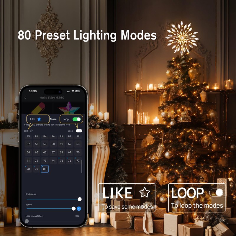 • [Timer and memory function] - The star topper for tree has a memory function. If it is turned off and turned on again, the light string will still be the last set light. With the timing function, the light string can light up your favorite light at any time. The timer function allows you to set the lights to turn off or on after a few hours