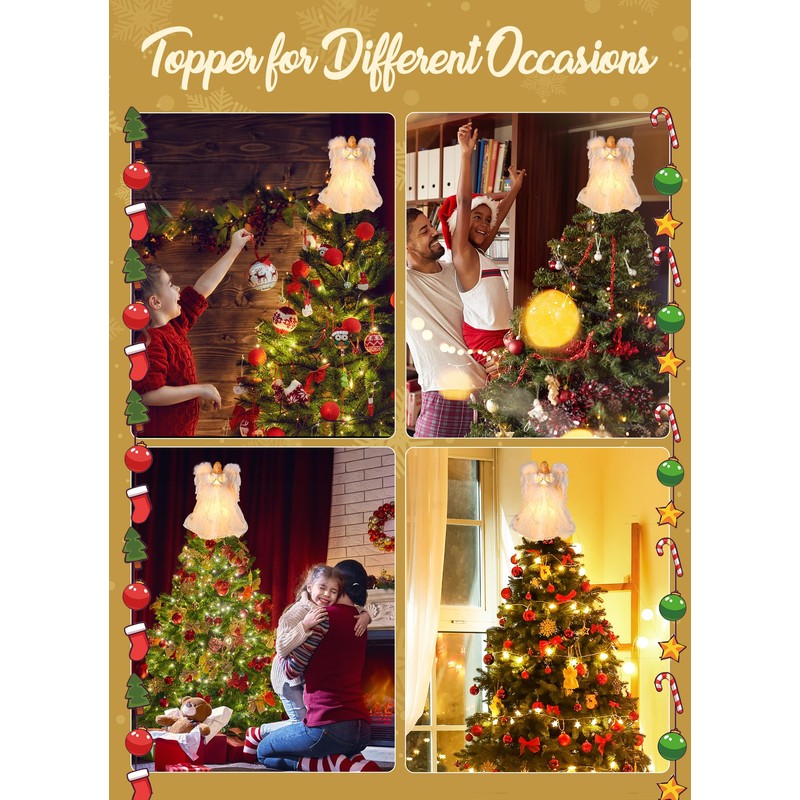- 【Christmas Angel Tree Top Light】This angel is 16.9 inches high, suitable for 3-5 feet Christmas tree as decoration, also can be placed on tabletop and mantel as decoration, add elegant and luxurious shimmering light to your Christmas.
