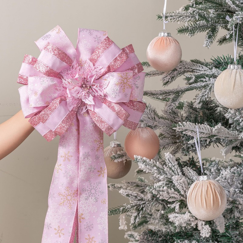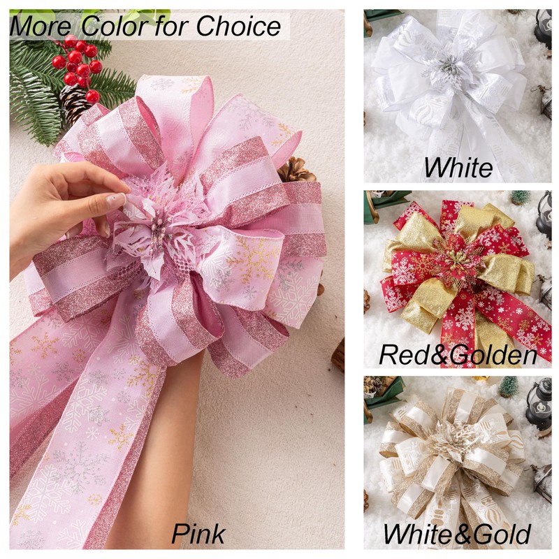 - EXCELLENT QUALITY: From design, material selection, procurement, license to packaging this Christmas tree top bow flower, every product you receive is through our strict quality control. We will also continuously improve and upgrade our styles, adding more colors and combinations. We welcome customers to provide different suggestions.