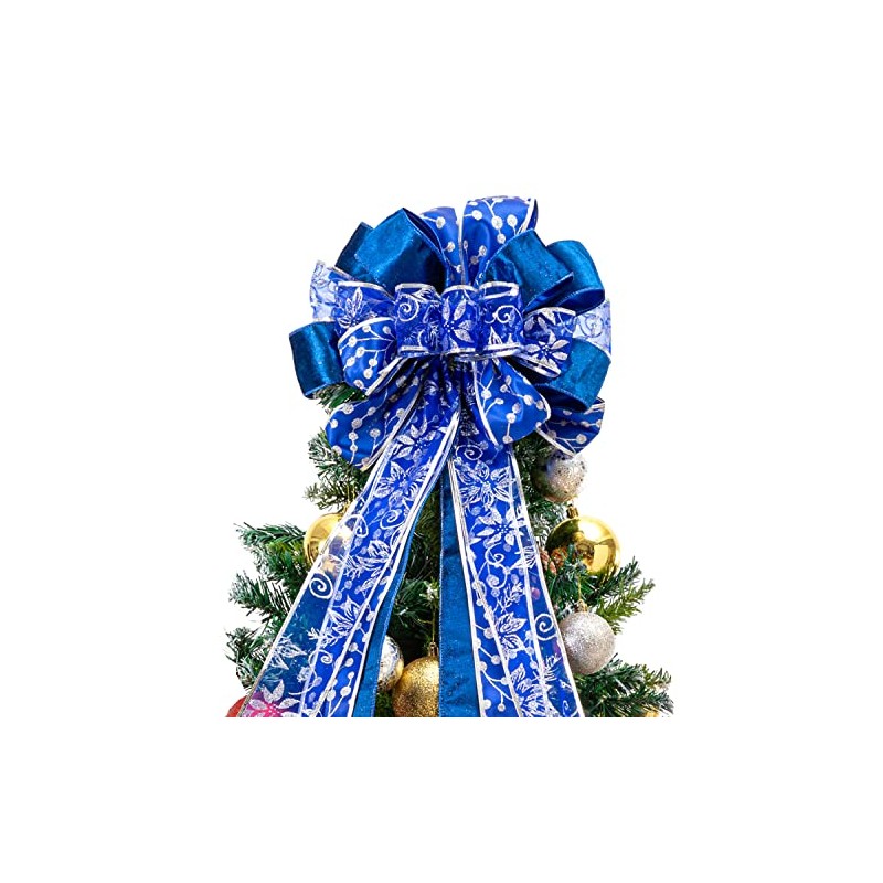 Christmas Tree Topper,Christmas Tree Bow Topper 41x13 Inches Large Toppers Gift Bow Tree Topper Bow Handmade Decoration for Wreaths Tree Toppers (Blue)