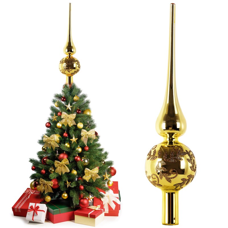 Christmas Tree Topper Glass Gold Christmas Tree Topper, UNOLIGA 26 cm Mouth-Blown Glass Christmas Tree Topper, Vintage Tree Topper