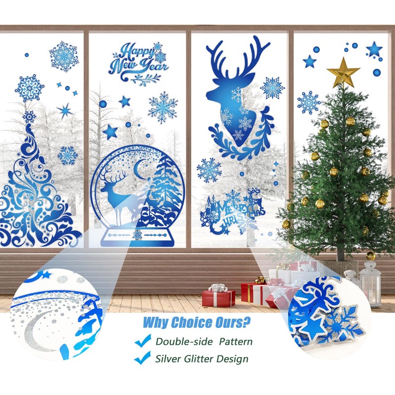 - Shiny Silver Christmas Xmas Window Clings Stickers: Our Christmas window stickers are double-sided, Silver design on one side, same visual effects inside and outside the windows, so you can see the picture from both sides of the window. Colorful christmas elements add a cheerful christmas atmosphere to the entire christmas season.