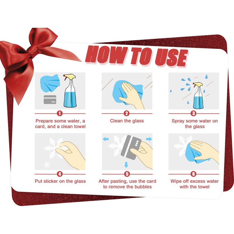 - Easy Installation: Christmas window film does not require glue, just peel the window sticker off the covering film, spray a little water on the surface, then stick it on a smooth and clean surface, reusable and removable without leaving any marks, no damage to the window, waterproof and not easily faded.