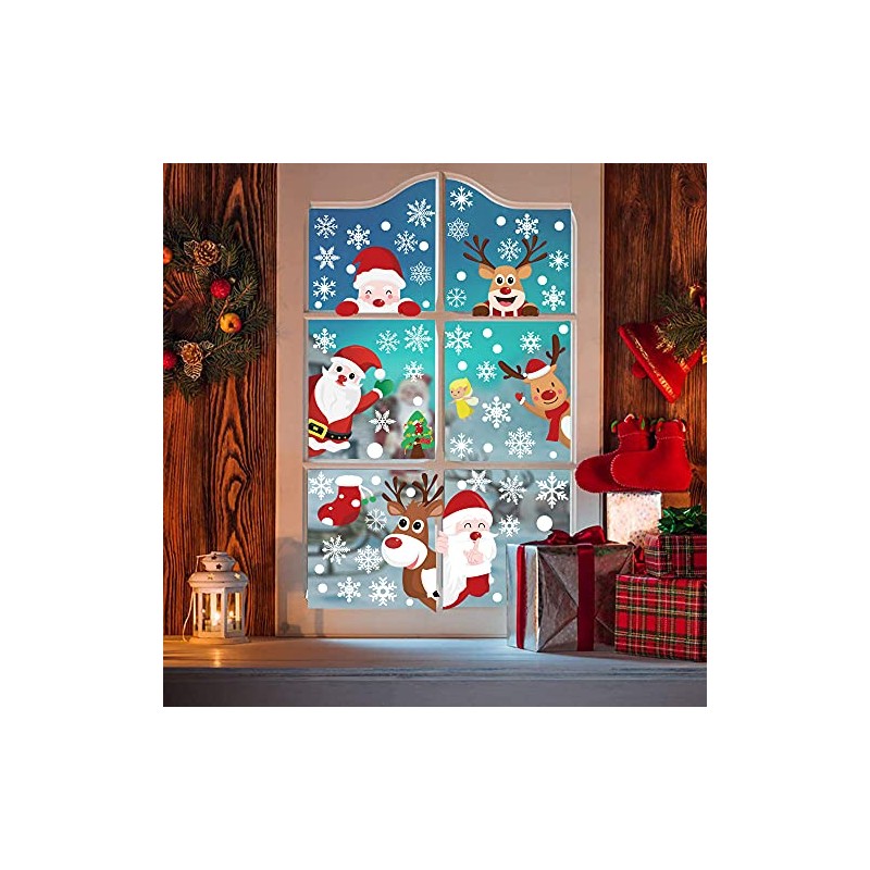 - 🎄【Size】 Christmas Window Clings With The Most Popular Christmas Image: Santa Claus, Reindeer, Snowflake, Snowman.The size of each Christmas sticker is 20cm*30cm/8.3*11.4 inches. They are the best choice for Christmas decoration of doors and windows