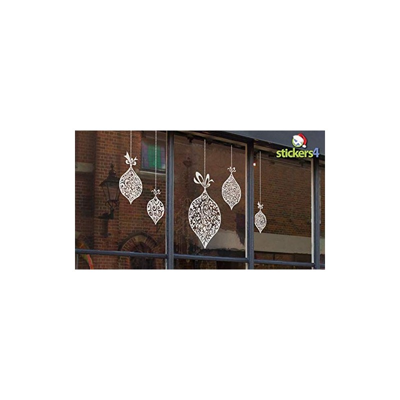 Christmas Window Stickers - Xmas Classic Hanging Bauble Window Cling Decorations - 5 Mixed Size Baubles