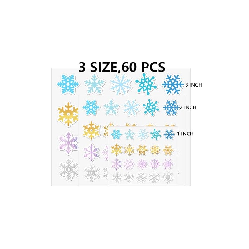 - 5.60-Piece Set: Includes a mix of 1, 2, and 3-inch snowflake stickers