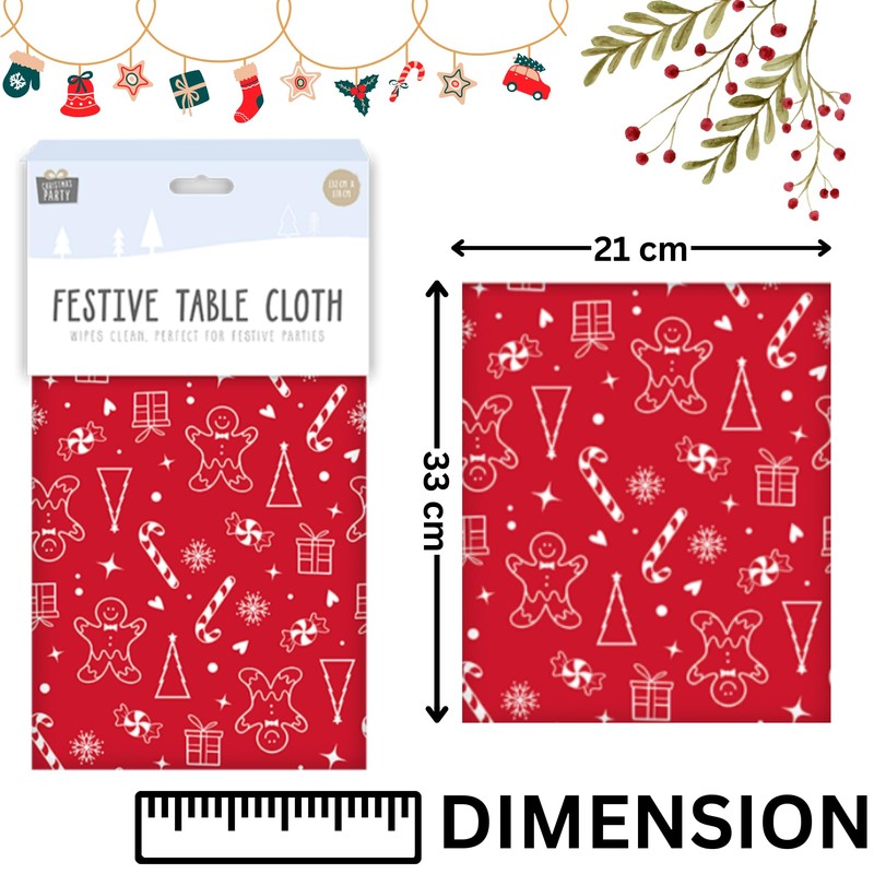 Christmas Wipe-Clean Tablecloth–132cm x 178cm PVC Perfect for Holiday Parties, Scratch-Resistant Non-Woven Backing, Easy to Clean, Durable & Reusable, Ideal for Dining & Entertaining(Red Gingerbread)