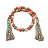 Christmas Wood Bead Garland - Green Red Rustic Wooden Beads with Jute Rope Plaid Tassel Bead Garland for New Year Winter Xmas Tiered Tray Décor Farmhouse Home Kitchen Wall Hanging Decoration