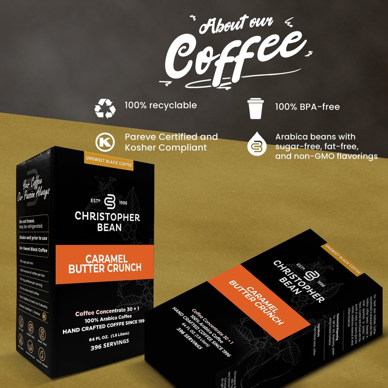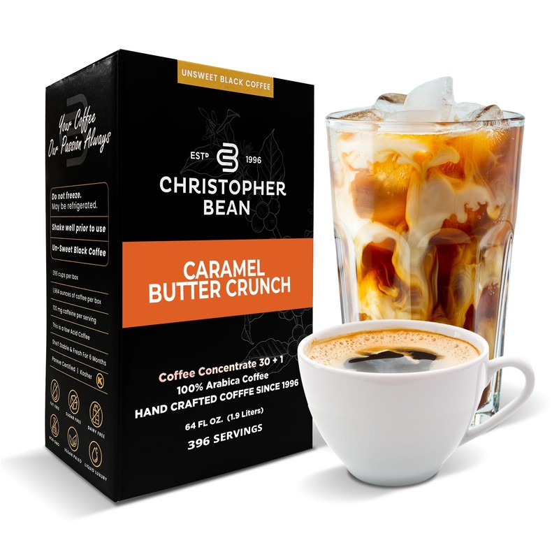 Christopher Bean Coffee - 396 servings, 30 to 1 Blend Bag in Box Liquid Instant Coffee or Cold Brew Coffee Concentrate - Hot or Iced Coffee - Caramel Butter Crunch