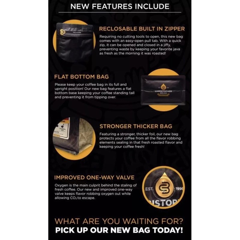 - Available in whole bean, drip universal, percolator coarse, and espresso fine