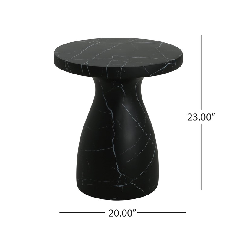 Christopher Knight Home Jayme Outdoor Side Table, Round Top Patio End Table Garden Stool, Lightweight Concrete Decorative Accent Table for Patio Balcony Beach Pool Side, Black Marble Finish