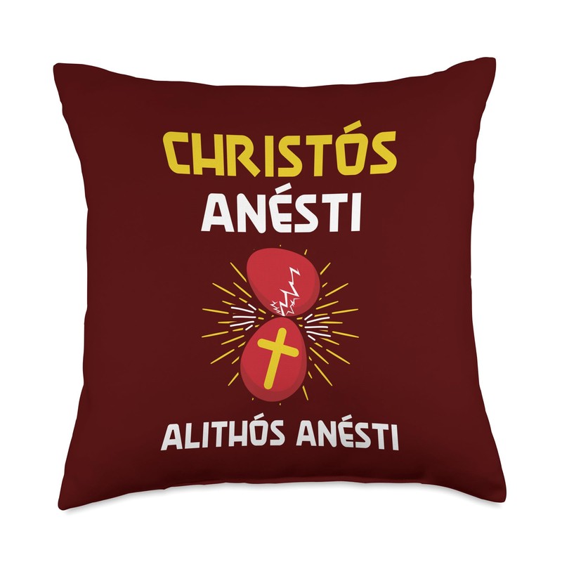 Christos Anesti Paschal Greeting Greek Easter Throw Pillow