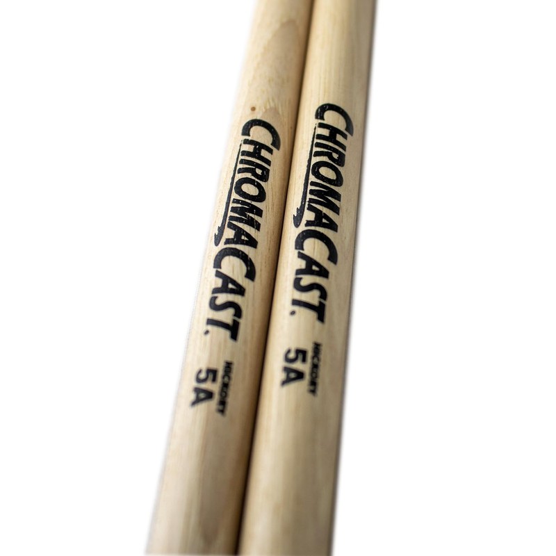 ChromaCast 5A USA Made Hickory Drumsticks Pair - Wood Tipped - Drum Sticks Tour Tested by Pro Drummers - Real American Hickory Wood