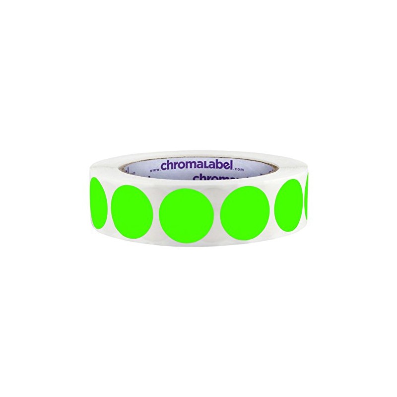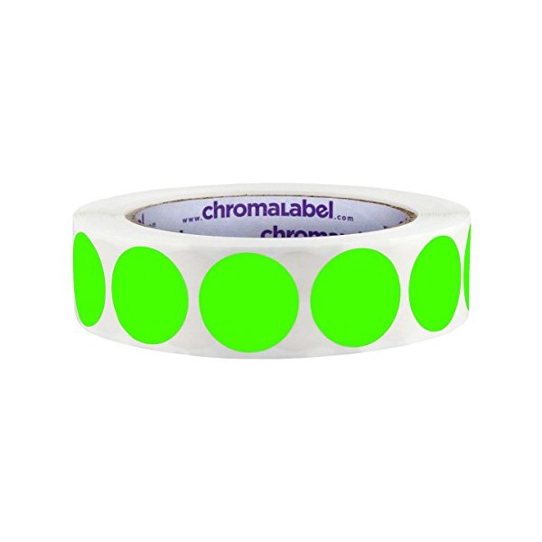 ChromaLabel 1 Inch Round Label Permanent Color Code Dot Stickers, 1000 Labels per Roll, Fluorescent Green