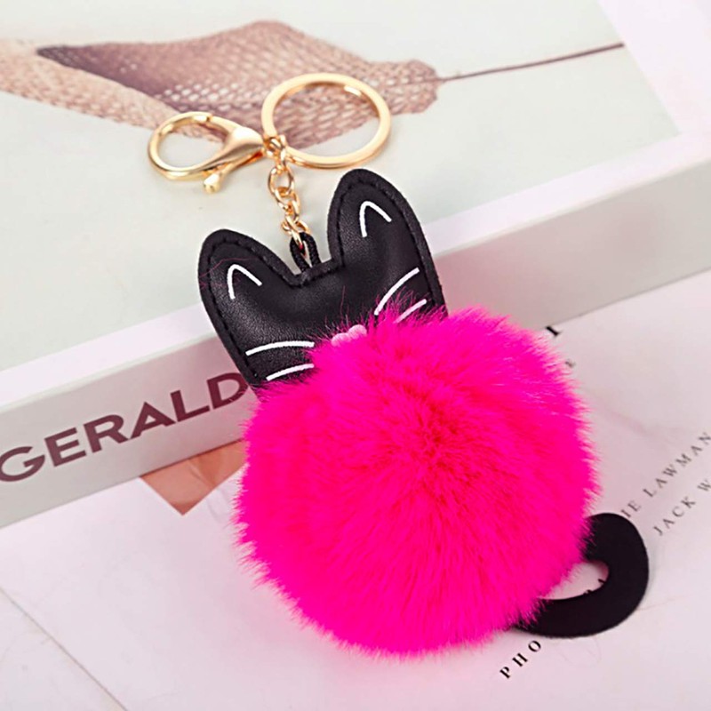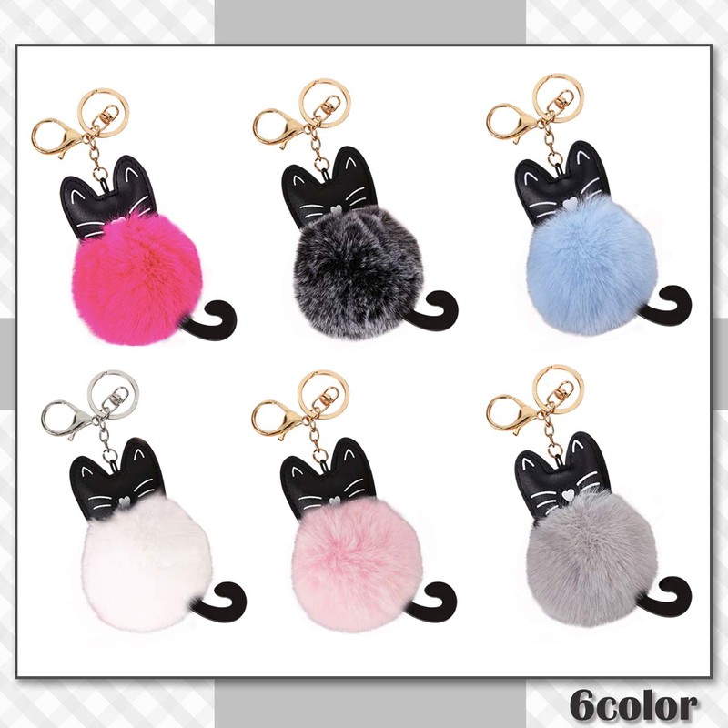 CHROME CRANE WB079 Women's Cat Cat Brushed Fluffy Cute Key Ring Charm Keychain, 05.blue
