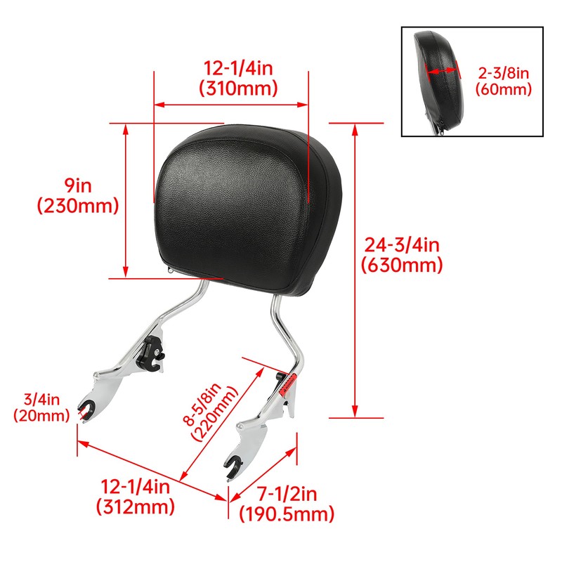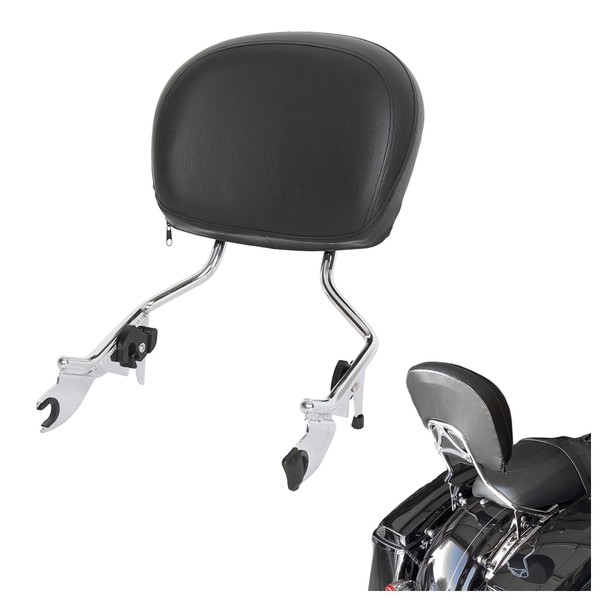 - Strict Quality Control: This sissy bar is made of high-strength steel, ensuring its long-lasting use. The backrest is made of faux leather, which is easy to clean and maintain. The black and chrome finish adds a unique style to the back of your motorcycle.